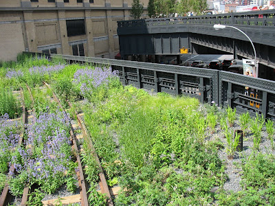 The sun actually made an appearance yesterday, so I packed up my camera and some reading, walked a few blocks south, and finally checked out NYC's latest addition: the new High Line park. I've loved the overgrown rusty beauty of the abandoned elevated railroad tracks on the western edge of Chelsea for years, and now the lower portion (from Gansevoort to 20th Street) has been transformed into a beautiful park. Reimagined by Diller Scofidio + Renfro (the same folks who did the new Alice Tully Hall), the park is a post-modern beauty and right up my alley. I'll be spending a lot of time there--especially when they open the sections still under construction to the north. I'm thankful to all of the people who fought for the High Line's preservation.