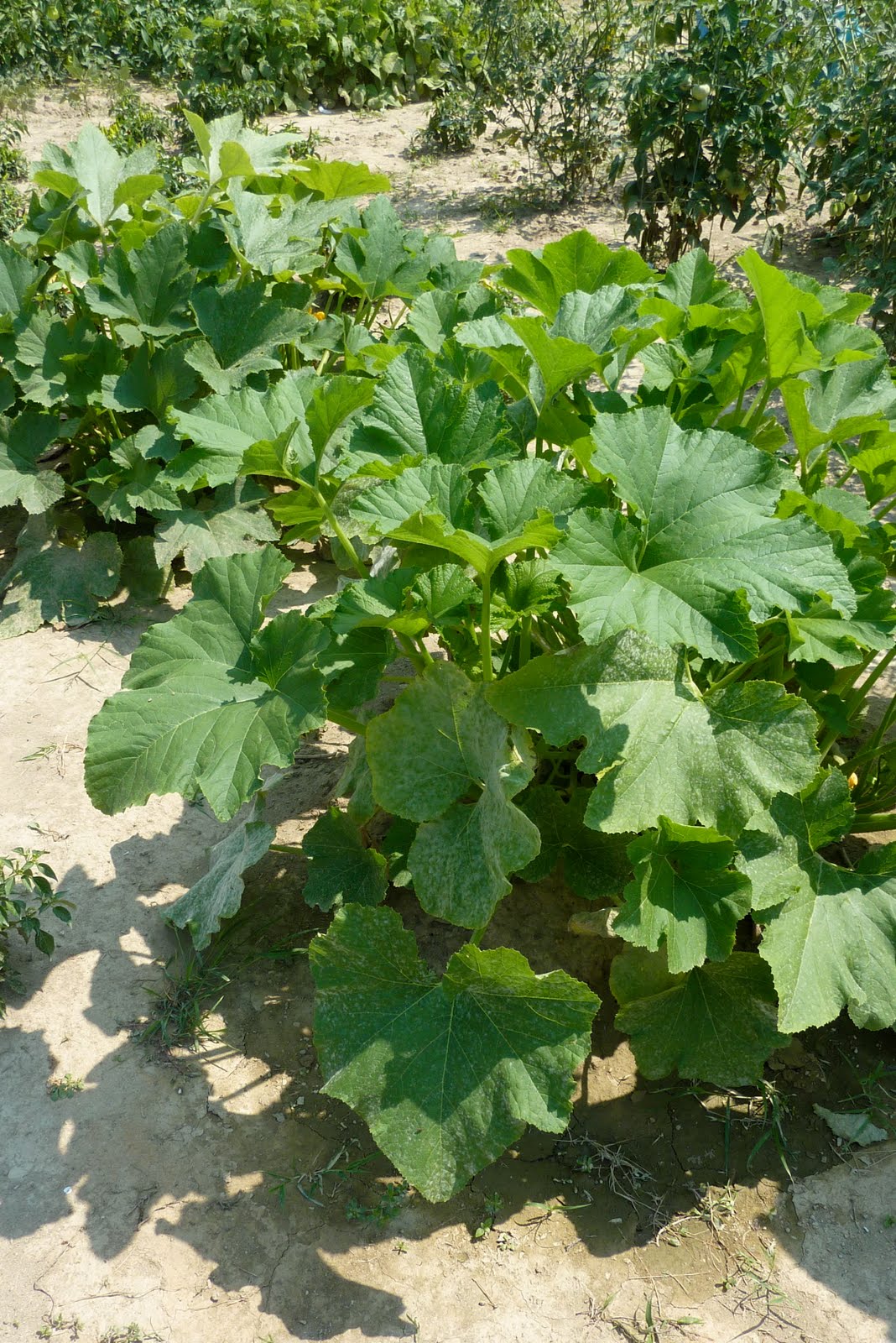| The pattypan plants in all their glory. They seem to be the happiest things out there! |